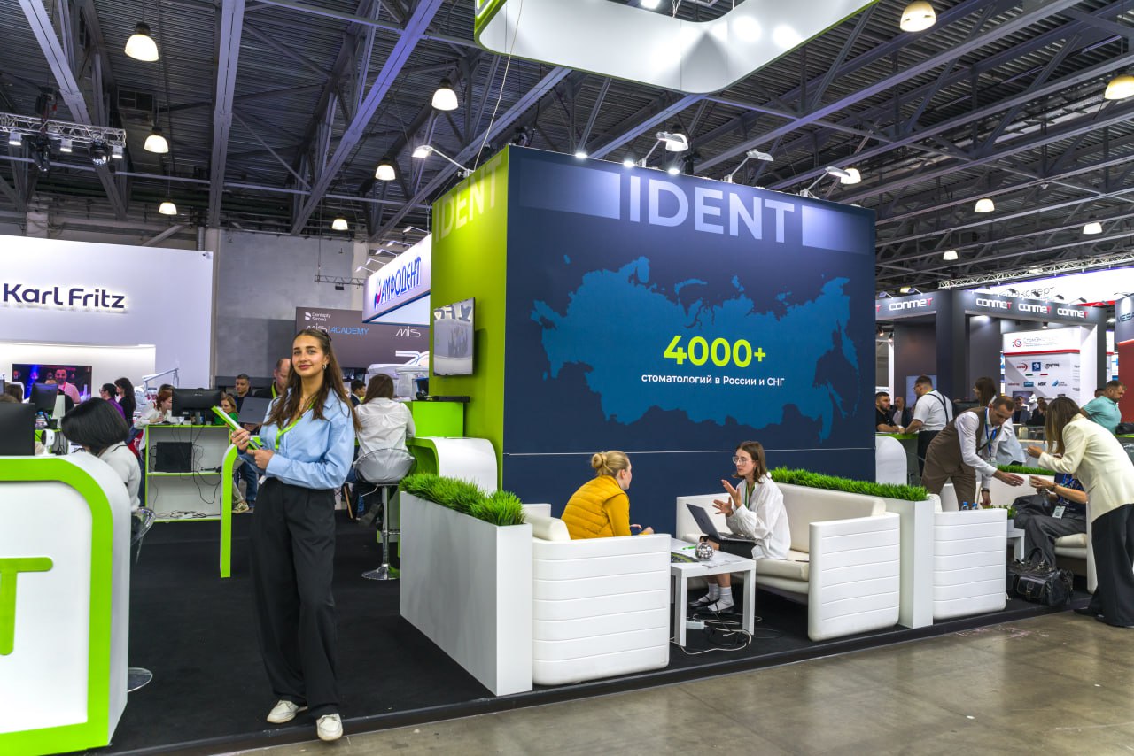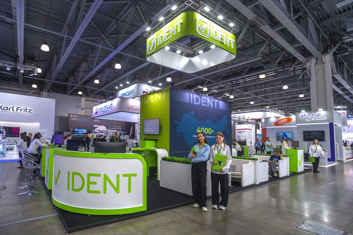 Мы разработали и построили выставочный стенд для Ident — разработчика программного обеспечения для стоматологов.